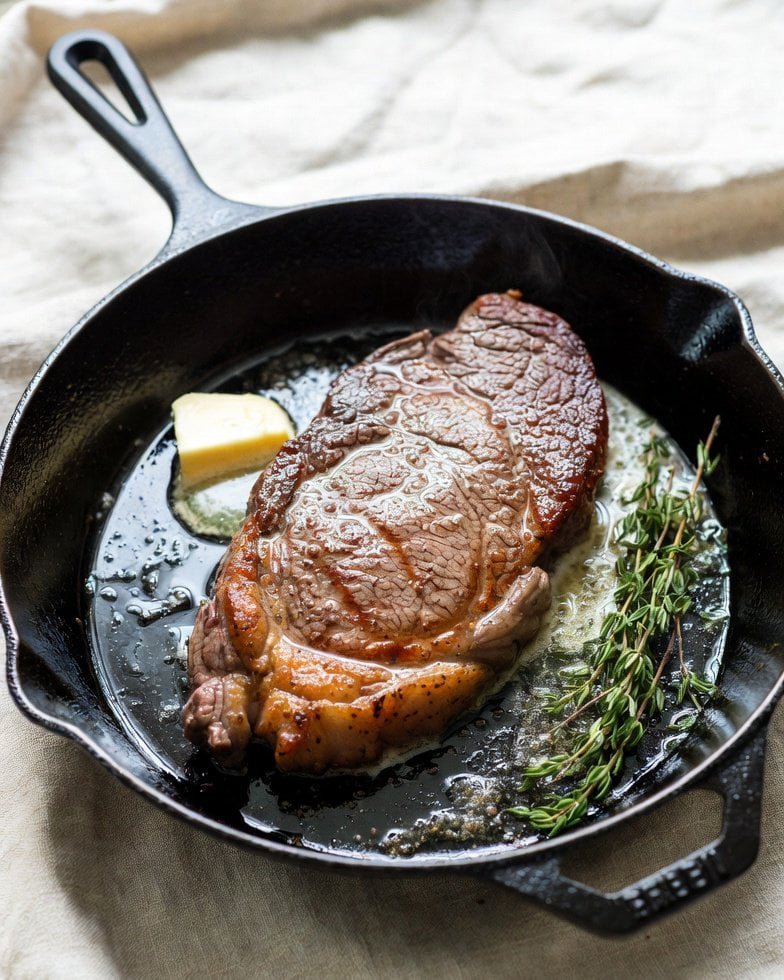 Place skin-side down in a cold pan — no oil needed if it’s fatty enough. Turn the heat to medium. The slow ramp-up renders out fat gradually for shatteringly crisp skin without burning the exterior before the inside cooks. Hot pan = greasy, chewy skin disaster. Cold pan = restaurant-level crackling. Pour off excess rendered fat as you go for extra-crispy results.